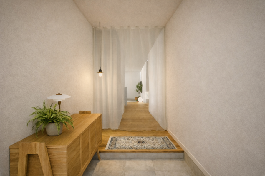 木のぬくもりと暮らす家 | 2026年9月完成予定 | 三豊市 柔らかな光に透けるカーテン越しに奥へと視線が導かれる 空間に包まれる安心感と抜けのある広がりが同居するリビング 奥へと連なる動線の先に、家全体の気配がにじむ PREV戻る 五つの庭が点在する家 | 2026年7月完成予定 | 綾歌郡 BACK一覧へ戻る 光を編む中庭のある家 | 2027年2月完成予定 | 高松市 NEXT次へ